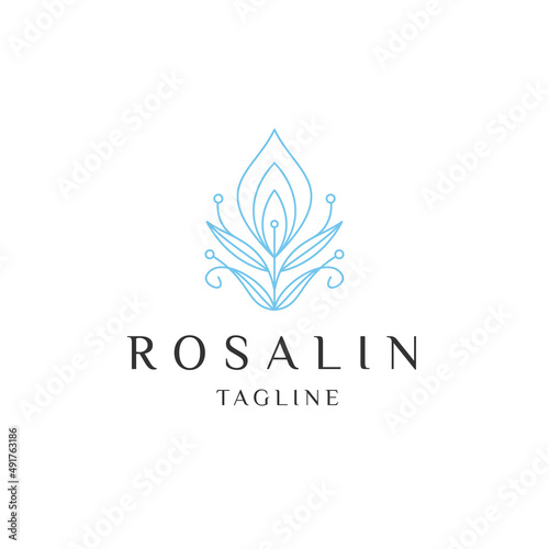 Roses flower line logo icon design template flat vector