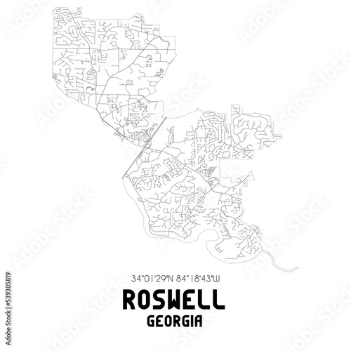 Roswell Georgia. US street map with black and white lines.