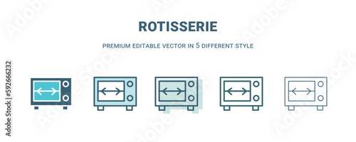 rotisserie icon in 5 different style. Outline, filled, two color, thin rotisserie icon isolated on white background. Editable vector can be used web and mobile