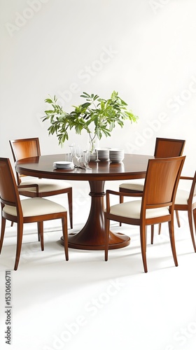 Round wooden dining table chairs studio setting