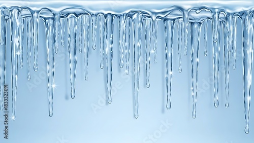 Row of Blue Icicles Dripping with Water Droplets winter