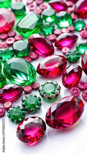 Rubies with intricate cut on white background
