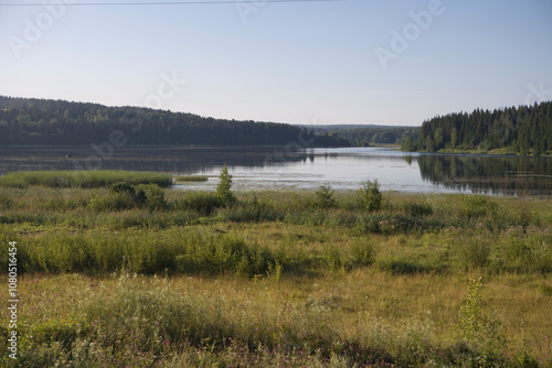 Russia Perm Krai landscape with river on a cloudy summer day