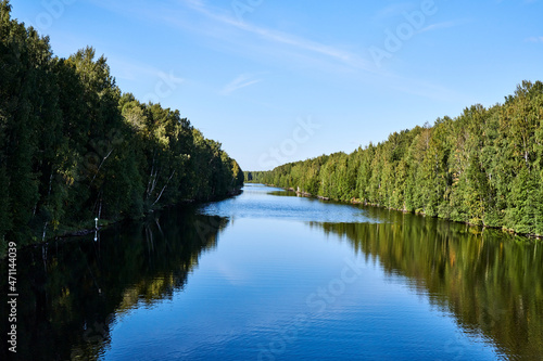 Russia. White Sea-Baltic Canal. A narrow channel cut in granite rocks from Volozero to Matkozero