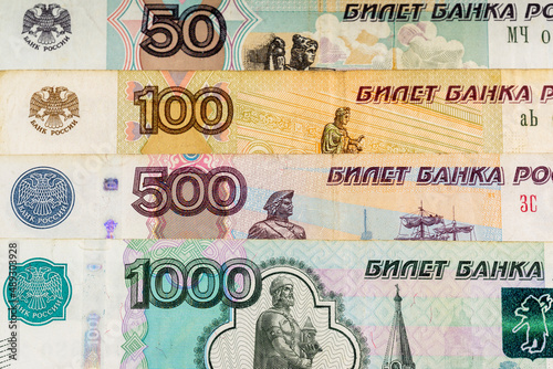 Russian Ruble Banknotes Inflation 1000 500 100 50 Macro Shot Close Up