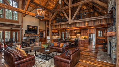 Rustic Living Room with Wooden Beams and Fireplace in Spacious Interior Home Architecture