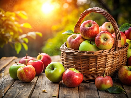 Rustic Wooden Basket Filled with Red and Green Apples - Fresh Fruit Harvest
