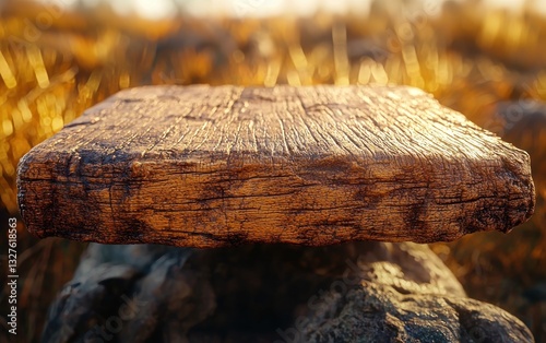 Rustic wooden slab on rocks