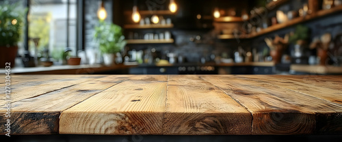Rustic Wooden Table Top With Blurred Cafe Interior