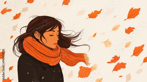 Sad young girl with closed eyes surrounded by autumn leaves on a white background. Seasonal depression Awareness Month.. Horizontal banner. Free space for text. Seasonal affective disorder (SAD)
