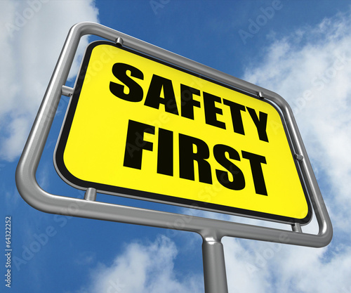 Safety First Sign Indicates Prevention Preparedness and Security