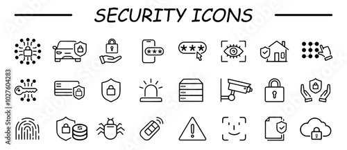 Safety, security, protection thin line icons. For website marketing design, logo, app, template, ui, etc. Vector illustration.