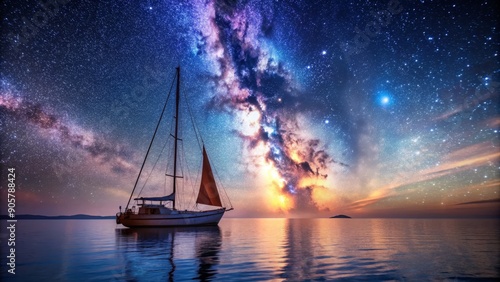 Sailboat Under Milky Way, Night Sky, Starry Night, Galaxy, Sea , night sky, stars