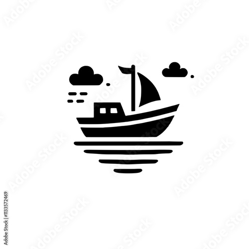 Sailing into Serenity: A minimalist silhouette of a sailboat gracefully navigating calm waters under a cloudy sky, evoking a sense of peace and tranquility.