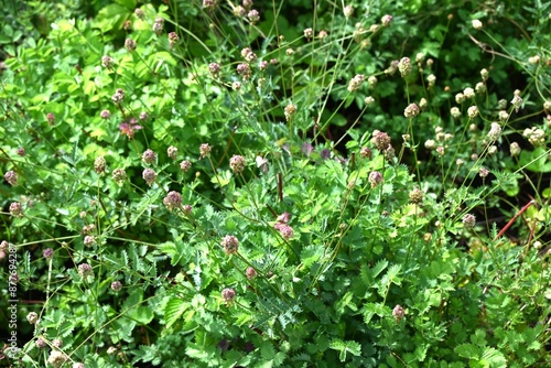 Salad burnet (Sanguisorba minor) flowers. Rosaceae perennial herb. Known as the "vegetarian herb," the leaves are used in salads and soups.