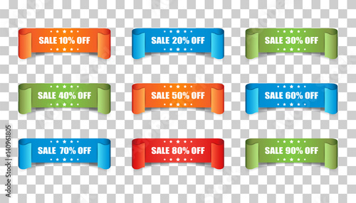 Sale ribbon vector icon. Discount sticker label set on isolated background.