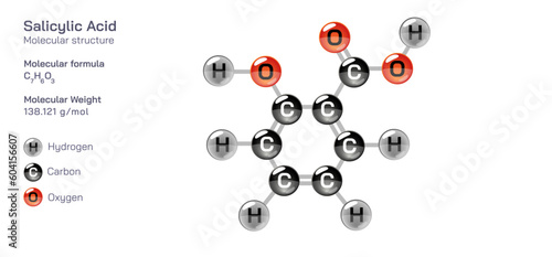 Salicylic Acid molecular structure formula. Periodic table structural molecular formula Vector design. Pharmaceutical compounds and composition. Easily printable product with correct CPK colour.