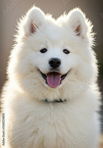 Samoyed Puppy Smiling with Fluffy White Fur – Happy Arctic Dog