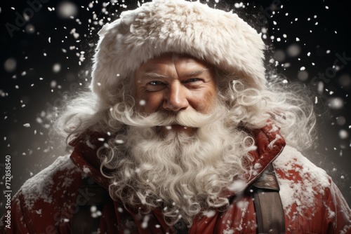 Santa Claus in Unbelievable Realism, Down to the Last Snowflake on His Beard, on an isolated Snowy White background, Generative AI