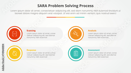 SARA model problem solving infographic concept for slide presentation with big circle on outline with round rectangle box with 4 point list with flat style