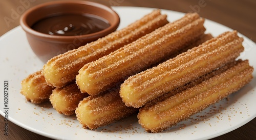 Savor Crispy Churros Generously Dusted With Cinnamon Sugar And Served With Rich Chocolate Sauce—A Sweet Spanish Dessert Perfect For Parties, Cafes, Festivals, Or Indulgent Snacking Moments
