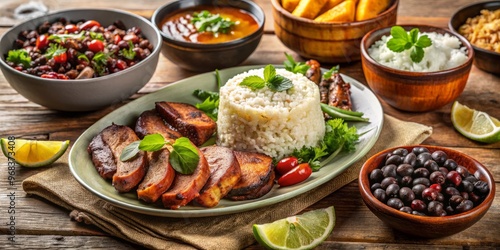 Savor the flavors of Cuba with succulent roasted pork, crispy plantains, fluffy rice and black beans, and a
