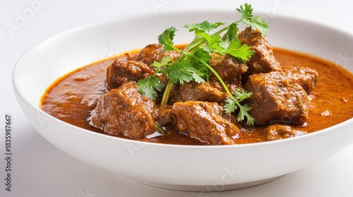 Savory Beef Curry Dish with Fresh Cilantro Garnish in a White Bowl