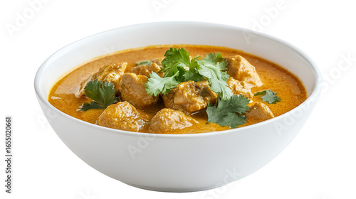 Savory Chicken Curry Dish in White Bowl Garnished with Cilantro on Transparent Background Authentic Indian Food