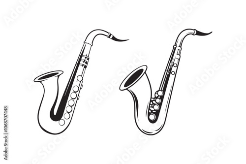Saxophone Silhouette vector illustration, Saxophone Silhouette Bundle
