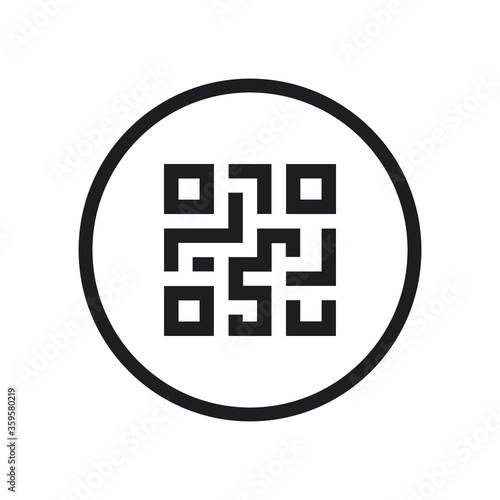 Scanning black round simple qarcode on phone screen icon, for interface concept elements, app ui ux web button logo, modern graphic glyphs flat design vector eps 10 isolated on white background