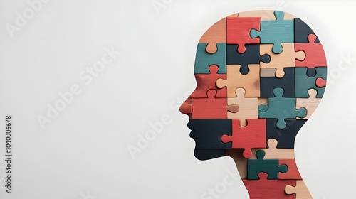 Scattered puzzle pieces forming a human head representing the concept of mental health balance and wellness for World Mental Health Day created with innovative technology