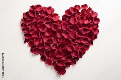 scattered rose petals in the shape of a heart. on a white background.