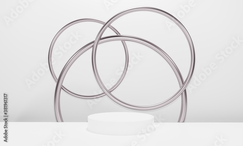 Scene with podium for mock up presentation in white color and minimalist style with copy space, 3d render abstract background