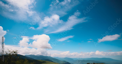 Scenic Cloudscape Over Rolling Hills and Majestic Mountains