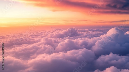 Scenic horizon filled with light clouds glowing in the orange and pink hues of twilight, ideal for serene visuals