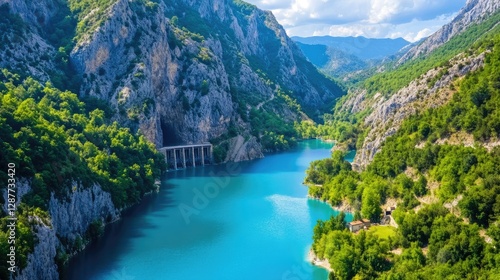 Scenic River Flowing Through Mountains with Lush Green Forests