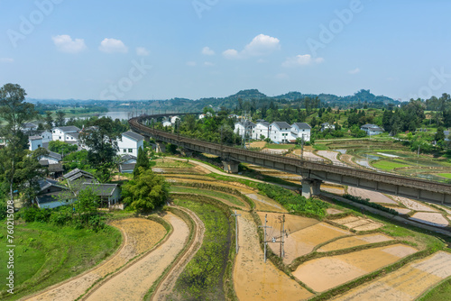 Scenic Rural Landscape with Railway Bridge and Fields