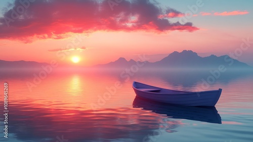 Scenic view of boat on calm water with vibrant sunset colors