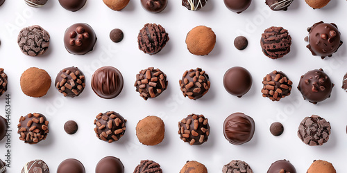 Schokoladen Pralinen, Trüffel auf weissen Hintergrund. Verschiedene Sorten.