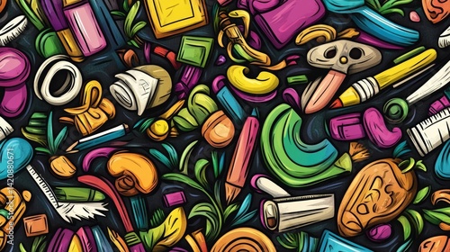 School background concept with seamless doodle pattern of school supplies