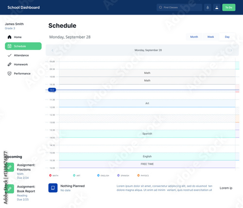 School Dashboard, Education Portal, Homework Web App Calendar Academic CMS Classroom UI Kit Template