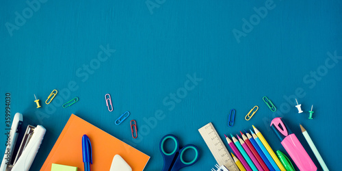 School supplies on blue background