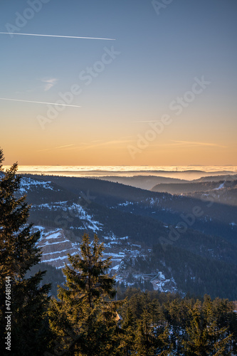 Schwarzwald Sonnenaufgang Winter Sonnenstarhlen