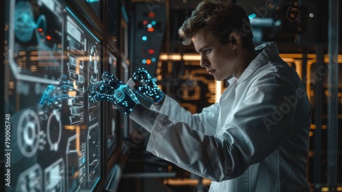 Scientist Interacting with Futuristic Interface