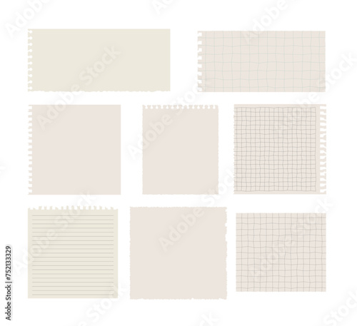 Scrapbook papers. Blank notebook torn pages vector illustration.