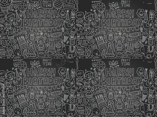 Seamless Blackboard Doodle Birthday party pattern background