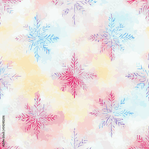Seamless christmass decoration snowflakes, watercolor xmas endless pattern. Winter collection