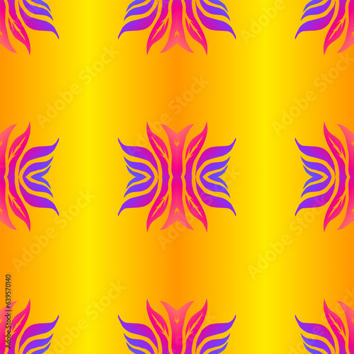 Seamless design vector Beauty flower line art batik ethnic dayak borneo pattern with colourful gradient