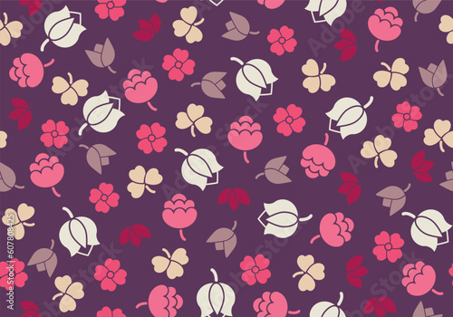 Seamless floral pattern - tulips, cornflowers, roses and leaves, vector illustration