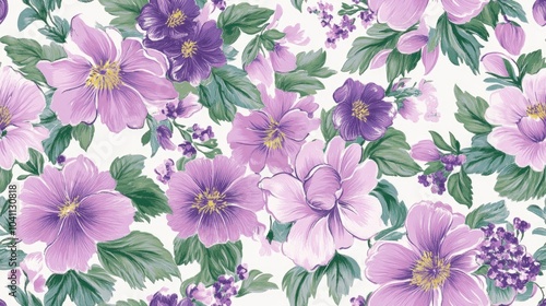 Seamless floral pattern featuring pink purple and green elements suitable for textiles wallpaper and decor